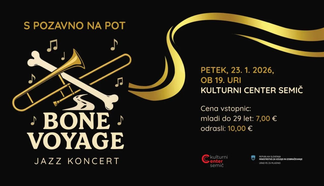 23. 1. | 19.00 - 23. 1. | 21.00, Semič Skupino Bone Voyage sestavljajo študenti jazz glasbe na Univerzi za umetnost v Grazu.