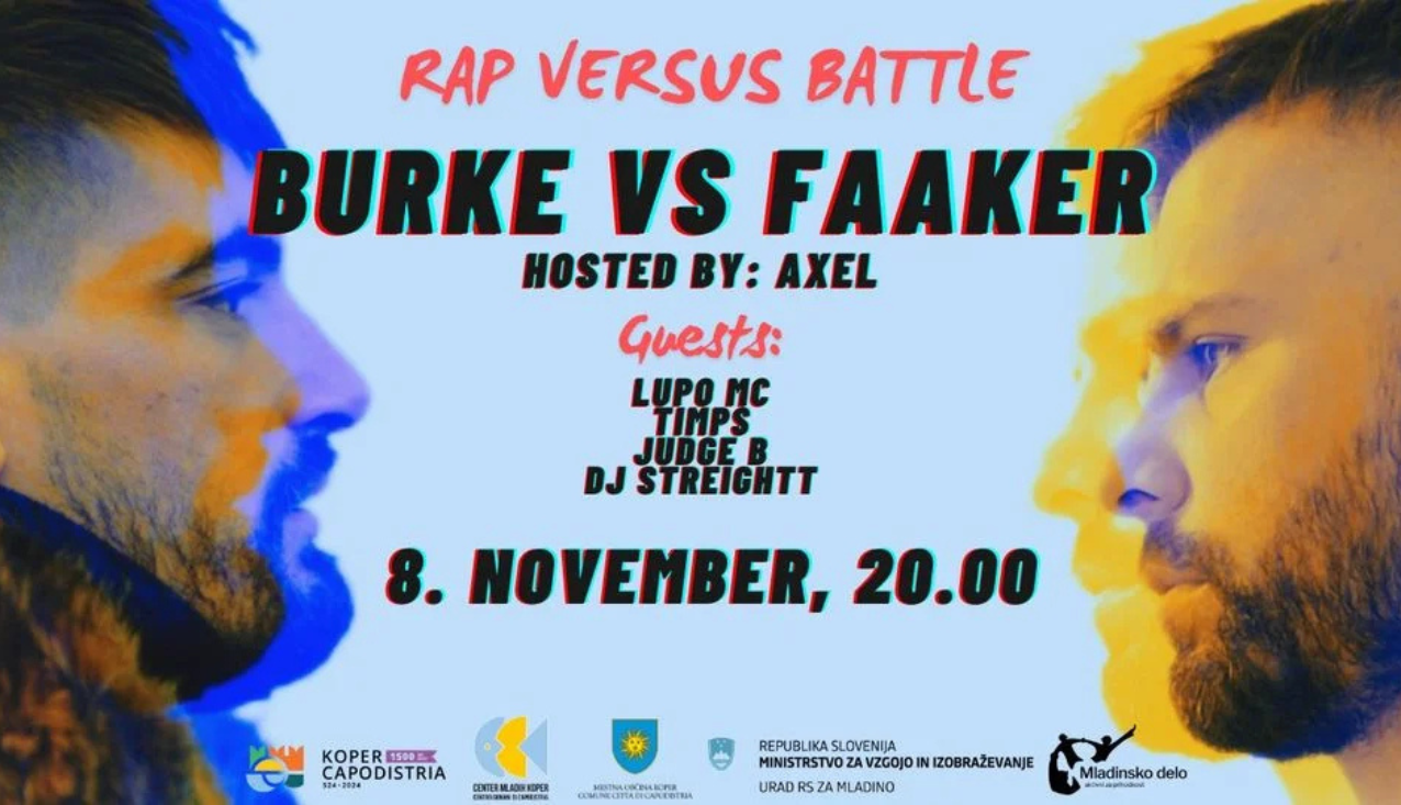 Faaker, znan po udarnih hitih, kot sta “Kdo je berdo” in “Nebom mu reku ghetto”, se bo soočil z enim izmed najbolj spoštovanih glasov domače rap scene, Burketom, avtorjem nepozabnih komadov “Klima, Robin, Delovna klasa” in mnogih drugih. Vsak bo predstavil svojih 10 najboljših komadov, publika pa bo s svojimi odzivi odločala, kdo bo zmagovalec večera. Reperja bosta izmenično predstavljala svoje hite, dokler ne bo jasno, kdo si zasluži naziv pravega kralja mikrofona!