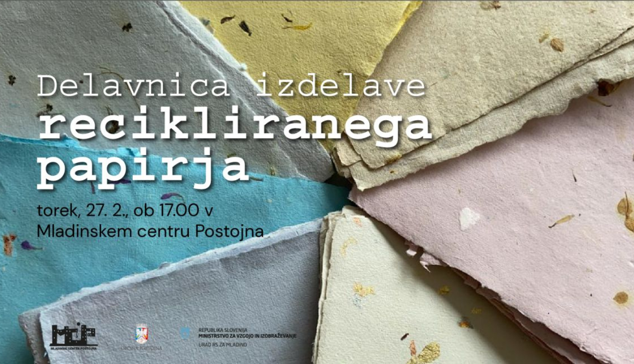Nauči se, kako se izdela recikliran papir iz odpadnega papirnatega materiala. Najprej si bomo ogledali primere, kaj vse se lahko ustvari iz recikliranega papirja. Nato se bomo lotili praktičnega dela. Vsak si bo lahko izdelal 4-8 kosov papirja v različnih barvah in dimenzijah (A6 in/ali A5) in jih še isti dan odnesel domov.
